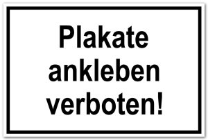 Zutrittsschild - Plakate ankleben verboten! - Folie Selbstklebend - 20 x 30 cm