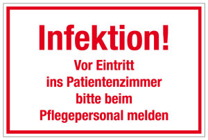 Krankenhaus- und Praxisschild - Infektion! Vor Eintritt ins Patientenzimmer bitte beim Pflegepersonal melden - Folie Selbstklebend - 20 x 30 cm