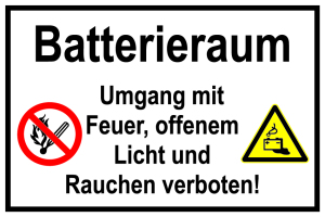 Hinweisschild - Batterieraum  - Folie Selbstklebend - 20 x 30 cm