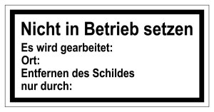 Hinweisschild - Nicht in Betrieb setzen - Folie Selbstklebend - 10 x 20 cm