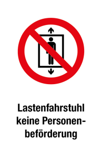 Verbotsschild - Lastenfahrstuhl keine Personenbeförderung - Folie Selbstklebend - 20 x 30 cm