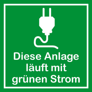 Schild für erneuerbare Energien - Diese Anlage läuft mit grünem Strom - Aluminium - 5 x 5 cm