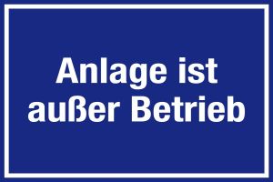 Hinweisschild - Anlage ist außer Betrieb - Folie Selbstklebend - 20 x 30 cm