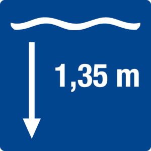 Schwimmbadschild - Wassertiefe 1,35 m - Folie Selbstklebend - 5 x 5 cm