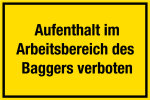 Baustellenschild - Aufenthalt im Arbeitsbereich des Baggers verboten