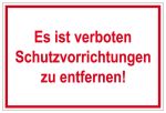 Hinweisschild - Es ist verboten Schutzvorrichtungen zu entfernen!